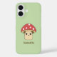 Eine grüne Telefonzelle mit einer Abbildung eines niedlichen Pilzes im Cartoon-Stil und anpassbarem Text unten! Es könnte perfekt für ein Kind oder einen Freund, der Kawaii Liebe Charakter und Natur!