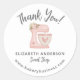 Ein niedlicher rosa Kuchenmischer mit Blume schmückt diesen Dankeschön-Aufkleber. Ideal, um Ihre kleine Business-Verpackung mit einem Dankeschön für Ihre Kunden zu dekorieren Personalisieren Sie es mit Ihrem Namen. Entworfen für Sie von BlackBerry Boulevard.