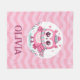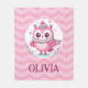 Wrap dein Kleines mit dieser bezaubernden Babydecke, die eine niedliche rosa Eule mit Schal und Kapuze auf einem rosa, gewellten Hintergrund trägt. Personalisieren Sie es mit ihrem Namen für eine Touch der Süße und machen Sie jede Schnecke zu einem einzigartigen, charmanten Erlebnis!