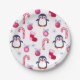 Niedliches Pink & White Weihnachtsmuster mit Pingu Pappteller
