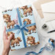 Umhüllungspapier mit einer hübschen Abbildung. Ein kleines braunes Pony, das gerne Gänseblümchen isst.