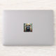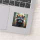 Ein bezaubernder Waschbär, der im Herbst in einem Wald sitzt, bedeckte Herbstlaube Aufkleber.