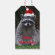 Geschenketiketten für Ihre Ferien Geschenkpackung Bedürfnisse, die das skurrile Foto Bild eines niedlichen Waldracoon mit einer roten Weihnachtsmannmütze. Ein lustiges, tierisches Design für den Urlaub! Wählen Sie Ihre Garnfarbe aus.