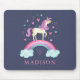 Ein niedliches personalisiertes Mädchen rosa und lila Regenbogen einhornen Mauskissen. Personalisieren Sie es für Ihr kleines Mädchen zurück in die Schulausstattung. Entworfen für Sie von BlackBerry Boulevard.