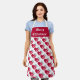 Niedliches Rot-Weiß-Weihnachtsmuster mit Text Freude an der Welt, Weihnachts-Strumpf Muster mit individuellem Text Frohe Weihnachten, Schürze