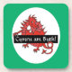 Ein Set quadratischer, korkgestützter Untersetzer oder Drink Mats zum Personalisieren, mit einem niedlichen kleinen roten Drachen, der einen Platz zum Hinzufügen Ihres Namens oder anderen Textes hat.