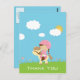 Diese Mädchen danken Ihnen Postkarte hat eine niedliche braune Haarmädchen Reiten auf einem Cartoon Pferd in einem Feld von Blume. Es gibt weiße Puffwolken am Himmel, und die Sonne guckt hinter einer Wolke hervor. Dies kann einfach mit Ihrer Dankeschön-Nachricht auf der Rückseite angepasst werden. Dies ist Teil eines passenden Geburtstagsparty Invitation Set. Grafiken von Zenware Designs bei Mygrafico