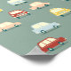 Niedliches Retro-Fahrzeugmuster auf einem halbgrünen Hintergrund. Originelle Kunst von Nic Squirrell.