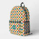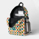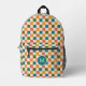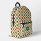 Dieser lustige, stilvolle, individuelle Rucksack mit Schachbrettmuster in Retrotönen aus goldgelb, aquamarin, olivgrün, melonorange und creme. Eine erste Textvorlage für Monogramm ist dabei enthalten. Verwenden Sie sie, um Ihren Rucksack zu personalisieren oder ihn und den Kreis zu entfernen, wenn Sie kein Monogramm bevorzugen. Dieser niedliche, farbenfrohe Rucksack ist perfekt für den Rücken in die Schule ! *Originelle Kunstwerke von Tracey Khalei / Orabella Prints.