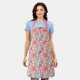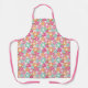 Diese niedliche Schürze hat einen Retro-Look mit Spaß und kokettem Blumendruck. Blume in Blau, Rosa und Orange sind in einem lebendigen Set mit weißem Hintergrund gehalten. So niedlich für ein Mädchen.