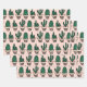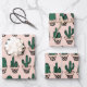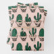 Niedliches, rosa, grün gepolstertes Kaktusmuster Geschenkpapier Set
