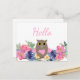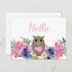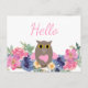 Niedliche rosa Herz Eule florale Aquarell Hallo Postcard.