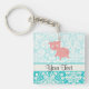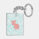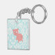 Niedliches rosa Schwein; Aquamariner Damast Schlüsselanhänger