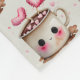 Niedliche Creme und rosa Aquarelltuch mit Vliesstoff-Decke, eine zauberhafte, heiße Schokolade-Tasse mit rosa Wangen, süßem Lächeln und rosa Herzstickstäben, die wie quirlige Herzantennen der Alien ausstoßen. Rosa Marshmallow-Herzen schweben auf dem heißen Kakao, und mehr Herzen schwebten um den niedlichen Becher herum in einer Pfütze Schokolade. Bearbeiten, um den neutralen Hintergrund auf eine beliebige Farbe zu ändern. Karo in unserem Shop für passende Artikel und mehr. ♡ Idyllfire