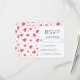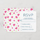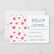 RSVP-Karte mit einem niedlichen Muster aus rosa und grünen Herzen auf weißem Hintergrund.