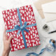 Kleine, weiße Katzen auf festlichem rotem Hintergrund. Purfekt für Tierliebhaber.