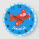 Niedliches rotes Flugzeug mit Cartoon Große Wanduhr