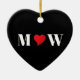 Niedliches rotes Herzchen angepasstes Paar moderne Typografie Monogramm Initialen minimalistisch elegante schwarze Keramik Ornament. Benutzerdefinierte weiße Initialen, rotes Herz, schwarzer Hintergrund. Großer Valentinstag, Hochzeit, Jubiläum, Freund, Freundin, Freunde, Weihnachts-Sake-Geschenk. Karo der Erholung der Auflistung für die Abstimmung der Elemente.