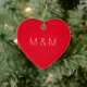 Niedliches rotes Herz Custom Paar monogram Initials minimalistische Typografie elegante Weihnachtsschmuck Keramik. Benutzerdefinierte weiße Initialen, Text, roter schlichter Hintergrund. Großer Valentinstag, Jubiläum, Freund, Freundin, Freunde, Weihnachts-Sake-Geschenk. Karo der Erholung der Auflistung für die Abstimmung der Elemente.