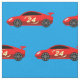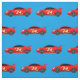 Niedliches, rotes Racecar-Muster Gewebe Kindertextilien. Niedliches Auto-Renndesign für Babydusche, Heimkinoprojekte und Kinderzubehör. Benutzerdefinierter Farbhintergrund hinter Rennwagen-Illustration. Machen Sie Ihre eigenen Kinderbekleidung, Dekoration und Dekoration. Sportwagensymbol für Jungen und Mädchen. Blauer oder benutzerdefinierter Farbhintergrund.