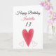 Niedliches Rotes Wasser Langes Herz 13. Geburtstag Karte