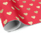 Dieses Verpackungspapier zeigt niedliche Imitate goldene Folienkomuster auf rotem Hintergrund.