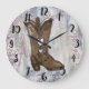Niedliches Rustikales Pink Cowgirl Herzstiefel Bau Große Wanduhr