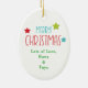 An der Vorderseite dieses Sake-Keramik-Ornament für ein Kind ist ein bezauberndes kleines, weißes Einhorn mit einer roten Weihnachtsmannmütze und Winterschal. Das Einhorn hat eine Reihe farbenfroher Baumlichter, die ihn umschlungen haben. Der Name Ihres Kindes ist unten grün. Die Rückseite des Ornaments hat eine frohe Weihnachtsbotschaft und Ihre eigene Unterschrift. Perfekt für eine Tochter, einen Sohn, eine Enkelin oder einen Enkel, besonders für einen, der Lieben einhornt!