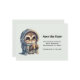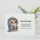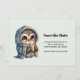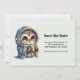 Save the Date Karte mit einer niedlichen Abbildung einer niedlichen Eule in einem Winterrobe und Schal mit einem heißen Kaffee.