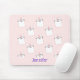 Ein individuelles Mousepad mit einem niedlichen Schlafmuster für Kätzchen. Auf einem rosa Hintergrund.