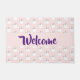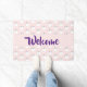 Eine willkommene Haustür, ein niedliches Schlafmuster von Kätzchen. Auf einem rosa Hintergrund.