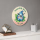 Feiern Sie die Ankunft Ihrer kleinen Dame mit dieser Kinderzimmer-Uhr, die mit einem bezaubernden Baby-Debwdrop träumen glücklich auf einem Bett von Blätter. Passen Sie den Namen und das Ereignis oder das Geburtsdatum des Babys an. Die Hintergrundfarbe und die Schriftart können auch nach Wunsch geändert werden. Design © W.H. Sim. Weitere Informationen unter zazzle.com/word2art