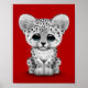 Dieses niedliche Design besticht durch einen kleinen, schneebedeckten Schneebecher mit großen Ohren und tiefen schwarzen Augen. Das Kätzchen sitzt mit seinen Pfoten nebeneinander und freut sich nach vorn, wodurch ein symmetrisches Muster entsteht. Der übergroße Kopf und der kleine Körper zusammen mit den Details im Fell schaffen eine schöne Kombination aus Cartoon und realistischem Look. Dieses einzigartige Design ist ein bezauberndes Beispiel für diese wunderbare und majestätische große Katze.