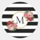 Niedliches Schwarz-weiß gestreiftes Retro-Blume Mo Runder Aufkleber