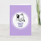 Eine Geburtstagskarte mit einer Nachricht, in der Sie personalisieren können. Entworfen mit einer Illustration einer lächelnden und schwingenden Kätzchen mit einem schwarzen Fleck um sein Ohr. Lila Polka Punkt Hintergrund. Einfach niedlich und hübsch.