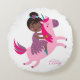 Niedliches Schwarzes Haar Reiten auf einem Einhorn Rundes Kissen