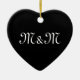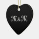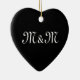 Niedliches schwarzes Herzskrippaar Initials elegan Keramik Ornament