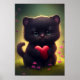 Niedliches Schwarzes Kitten mit Herz und Blume Poster