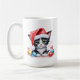 Niedliches Schwarzes und Weiß Kitten in der Weihna Kaffeetasse