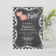 Niedliches Schwein auf schwarzen und weißen Polka- Einladung