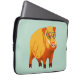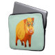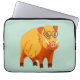 Die sonnige Schweine-Laptop-Hülle mit einer Darstellung eines digital bemalten Wildschweins mit großen Stoßzähnen und einer herzförmigen Brille in hellgelben, orangefarbenen und blauen Farben.