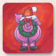 Niedliches Schwein in Weihnachtsmannmütze auf Rot Getränkeuntersetzer