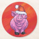 Niedliches Schwein in Weihnachtsmannmütze auf Rot Runder Pappuntersetzer
