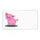 Dieses niedliche kleine rosa Cartoon Schwein steht auf einem Grasstreifen und lächelt seinem neuen Besitzer, Ihnen, zu.