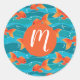 Niedliches Schwimmen Goldfish & Wassermuster Runder Aufkleber
