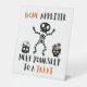 Ein niedliches und spukhaftes Trick oder Treat und Happy Halloween Bonbons Schild für die Veranda, Haustür für den Fall, dass Sie nicht da sein können, um Leckereien an der schönsten Nacht des Jahres zu verteilen. KNOCHENappetit Bedienen Sie sich einer Leckerei, sagt ein kurioses niedlich-orange-schwarzes Eingangstor oder ein Bonbonschild auf der Veranda, mit zwei Schädelkesseln gefüllt mit finsteren Süßigkeiten, die ein tanzendes Skelett begleiten. Oder perfekt für ein Party mit Süßigkeiten oder Beute.