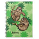 Notebook mit niedlichen Hängen, die einen Zweig mit Kekropie-Blätter im Hintergrund klettern. Personalisieren Sie mit Ihrem Namen.