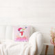 Niedliches Snowman Baby`s First Christmas Baby rosa Kissen. Niedlich lächelnder Schneemann mit einer Schneeflocke auf der Nase. Der Hintergrund ist ein rosa, farbenfroher Splash mit weißen Schneeflocken. Geben Sie Ihren Namen und das Geburtsjahr ein.