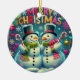 Niedliches Snowman-Paar mit einem Hats-Ornament Keramik Ornament