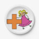 Niedliches Strichmännchen Girl mit Plus-Zeichen Pappteller
